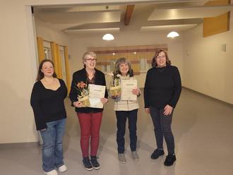 Mit Urkunden und Blumen wurden Jutta Rohrbach und Doris Schneider bei der Jahreshauptversammlung für 40-jährige Vereinszugehörigkeit geehrt.