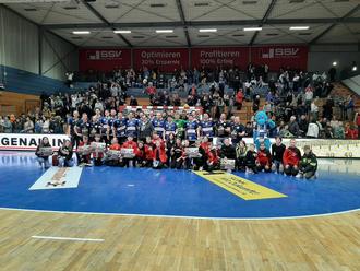 Aus diesem Grund wurde eine Abschlussfahrt der E-Jugend Vizemeister/innen gemeinsam mit den Mannschaften (WJD / MJD) zum Bundesligaspiel ThSV Eisenach gegen den HC Motor Zaporizhzhia (ukrainischer Meister) durchgeführt. Unsere Mannschaften wurden in der Halbzeitpause durch den Hallensprecher begrüßt. Nach dem Spektakel, welches mit einem 28:28 unentschieden endete, durften unsere Spieler/innen in einen gemeinsamen Pressetermin mit den Bundesligaprofis. Hier wurden Fotos gemacht und persönliche Gespräche mit den Spielern geführt. Dieser Saisonabschluss wird allen Spieler/innen, Trainern und Betreuern in guter Erinnerung bleiben.