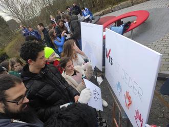 Im Anschluss daran konnten alle Schülerinnen und Schüler ihre Handabdrücke mithilfe vorgefertigter Schablonen und bunter Farben auf einem großen Plakat verewigen. Sie sollen symbolisch für die Verbundenheit untereinander stehen.