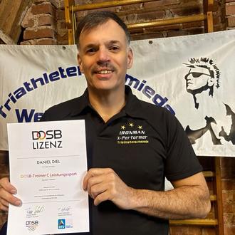 Daniel Diel hat erfolgreich den C-Trainerlehrgang für Triathlon abgeschlossen. Die 120 Lehrneinheiten fand in Dieburg (Darmstadt) statt. Diese teilten sich in einen sportartübergreifenden Grundkurs und einen triathlonspezifischen Fachkurs auf. Zur Theorie kamen auch Praxisanteile, eine schriftliche Prüfung sowie eine Hausarbeit. Neben den Disziplinen Schwimmen, Radfahren und Laufen standen auch Themen wie Kindeswohl, Sportpsychologie sowie aktuelle Wettkampfregeln auf dem Programm. Dank seiner langjährigen Trainings- und Wettkampferfahrung war Daniel gut vorbereitet, musste sich jedoch auch mit neuen Regelungen vertraut machen. Die C-Trainer-Lizenz wurde ihm schließlich vom Hessischen Triathlonverband verliehen.
