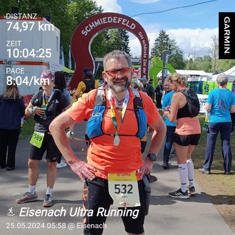 Es war für Martin Weiss sein offiziell 10. Start beim Rennsteiglauf ( 1 x Halbmarathon, 1 x Marathon und 8 x Supermarathon). In gewohnter Routine und bei bestem Wetter kam er nach 10.04:25 Std. ins Ziel und belegte den 167 Platz AK M45.