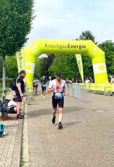 Bei der Ironman-Veranstaltung in Bad Schönborn startete Gregor Schäfer auf der olympischen Distanz. Hier waren 1,5 Km Schwimmen, 40 Km Rad und abschließend 10 Km Lauf gefordert. Bei optimalen Temperaturen wurde im Wellenstart das Schwimmen im Hardtsee mit knapp 500 Teilnehmern eröffnet. Gregor kam nach 31:22 min in die Wechselzone und wechselte auf seine stärkste Disziplin, dem Rad. Hier konnte er seine gute Mittelfeldplatzierung verbessern und beendete diesen Split in hervorragenden in 1:19:38 h. Beim finalen Lauf gab er noch mal alles und konnte seine gute Platzierung in einem sehr starken Teilnehmerfeld behaupten. Seine Laufzeit betrug 56:24 min, somit erkämpfte er sich mit einer Gesamtzeit von 2:54:21 h einen guten 24. Platz in seiner Altersklasse M45.