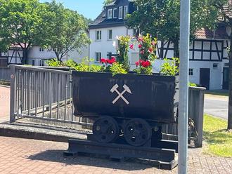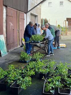 Wie jedes Jahr trafen sich Mitglieder des Heimatbundes Herfa zur Bepflanzung von Blumenkästen. Diese wurden entlang der Hauptstraße am Bachgeländer aufgehängt. Die beiden Loren wurden ebenfalls neu bepflanzt.