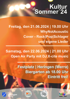 Nach dem großen Erfolg des 1. KulturSommers’24, bei herrlichem Sonnenschein und reichlichem Besucherzuspruch wird die Konzertreihe auf dem Festplatzgelände in Heringen fortgeführt!