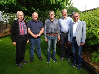 Hans-Jürgen Wehner (Mitte) beim Abschied mit seinen Kollegen Arno Seegebarth, Norbert Vollmar (von links) und Thomas Becker und Wilfried Olschewski (von rechts).