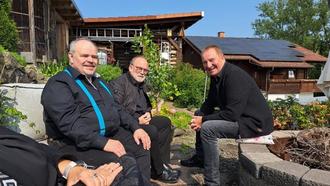 sichtlich guter Laune, Bass Frank Pankow, Chorleiter Karl-Heinz Siebert und Bass Lothar Brill.