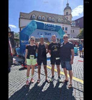 Am 28.6.25 fand zum ersten Mal ein Swim and Run Wettkampf in Bad Salzungen statt. Fünf Athleten waren hier in drei Teams vertreten, es musste jeweils ein Athlet schwimmen und der 2. Athlet laufen. Cosima Jähn und Daniel Diel starteten zuerst auf der Kurzdistanz. Erst musste Daniel 200 m im Burgsee schwimmen und Cosima im Anschluss 2,5 km um den Burgsee herum laufen. Sie erzielten mit einer Zeit von 0:24:27 Std. den 2. Platz in der Teamwertung (M/W) auf der Kurzstrecke. Bei der Langstrecke musste der Schwimmer 400 m schwimmen und der Läufer 5 km laufen. Hier startete Daniel noch mal zusammen mit Harley Weppler. Sie kamen mit einer Zeit von 0:32:41Std. In der Teamwertung (M/M) auf Platz 4. Das zweite Team war mit Denise Schneider und Reinhard Schäfer als Schwimmer am Start. Mit einer Zeit von 0:39:49 Std. belegten sie den hervorragenden 2. Platz in der Teamwertung (Männlich/Weiblich)