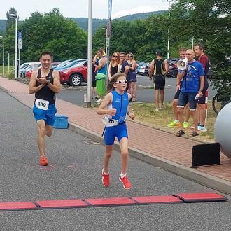 Im fritz-kunze-bad konnten sich nach zwei Jahren Zwangspause am 26.06. wieder zahlreiche „Ersttäter“ nach dem Zieleinlauf wie ein „Ironman“ fühlen. Insgesamt 24 Starter stellten sich der Herausforderung von 250 m Schwimmen, 13 Km Rad und 2,1 Km Lauf zu absolvieren, die meisten davon schnupperten zum ersten Mal in einen Triathlon hinein. Die Athleten kamen aus dem gesamten Kreisgebiet und dem nahen Thüringen. Bei hervorragenden äußeren Bedingungen und guter Gesamtorganisation wurde pünktlich um 10:30 Uhr der Wettkampf gestartet. Mit vollem Elan begann der Schwimmstart, manchmal etwas zu schnell, da einige dann zwischendurch mal eine kleine Pause benötigten. In der Wechselzone begann dann der hektische Wechsel aufs Rad. Die Radstrecke verlief zwar ohne große Steigungen, dennoch kamen viele mir schweren Beinen zurück in die Wechselzone und alle wurden mit kräftigem Beifall empfangen. Nachdem die Laufschuhe angezogen wurden, ging es auf den letzten Split, dem Lauf. Hierbei gaben die angehenden Triathleten nochmal alles, um mit viel Beifall über die Ziellinie zu laufen und die erste Triathlonmedaille in Empfang zu nehmen. Schnellster bei den männlichen Teilnehmern war Richard Freytag, der für das New Life Gesundheitszentrum startete. Bei den Frauen setzte sich Theresa Kutza durch. Die Gesamtergebnisse uns eine schöne Fotostrecke sind auf der Homepage und auf Facebook veröffentlicht.