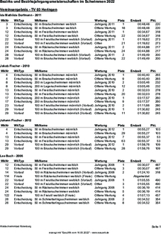| 23 | Vorlauf | 100 m Freistilschwimmen männlich (Vorlauf) | Jahrgang 2010 | 2 | 01:11,66 | 280 |