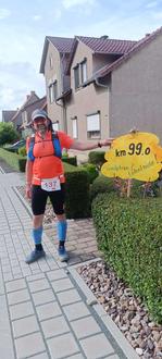 Er musste über die Grenzwiese und den Momelstein nach Floh Seligenthal herunter um nach einem langen kräftezehrenden Anstieg wieder hoch auf den Rennsteig zur Ebertswiese zu laufen. Nun ging es durch den Splittergrund nach Tambach Dietharz und weiter steil bergan nach Finsterbergen. Hier machte ihm die Sonne ordentlich zu schaffen, aber kurz nach Finsterbergen, bei Km 76 zog Regen auf und es kühlte merklich ab. Dies gab ihm und auch vielen anderen Läufern nochmals ordentlich Kraft und sie konnten auf den restlichen 24 Kilometer das Lauftempo wieder deutlich steigern. Erst auf den letzten 5 Kilometern machte ihnen die Sonne wieder zu schaffen, aber das war dann auch egal, da es bis zum Ziel in Fröttstädt nicht mehr weit war. Martin belegte Platz 10 (AK) in einer Zeit von 14.20:41 Std.