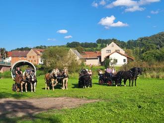 Es haben 8 Fuhrmänner mit ihren Gespannen, vom 4- Spänner Mini-Shetty bis zum Rheinisch-Deutschem Kaltblut, die Teilnahme angemeldet.