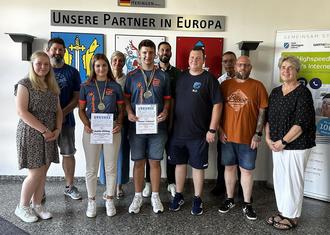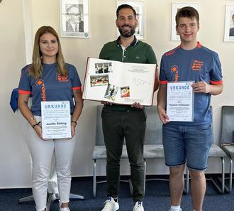 Für die großartigen Leistungen bei den zurückliegenden Weltmeisterschaften im Kegeln in Düsseldorf haben die beiden Wölfershäuser Joelle Ehling und Samuel Schlosser für Deutschland voll abgeräumt und mehrere Goldmedaillen für ihr Land gewonnen. Für diese großartige Leistungen hat Bürgermeister Daniel Iliev die für den SKV Blau-Weiß Herfa startenden Kegler sowie deren Familien zum Empfang ins Rathaus eingeladen. Dabei durften sich die jungen Weltmeister im Beisein des Stadtverordnetenvorstehers Alfred Rost in das Goldene Buch der Stadt einzutragen. Die Stadt Heringen sagt herzlichen Glückwunsch für diese Ausnahmeleistung.