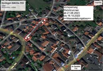 Aufgrund der Neuverlegung der Wasserleitung und Herstellung der Hausanschlüsse wird es erforderlich, dass die Gemeindestraße „Am Wehrbrunnen“, Stadtkern Heringen (Werra) in der Zeit vom 21.08.2023 bis zum 16.10.2023 für den Verkehr gesperrt werden muss.