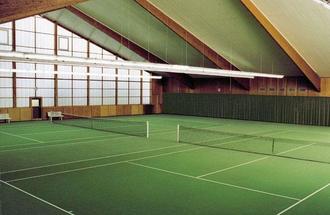 Innenansicht der Tennishalle für 2 Spielfelder