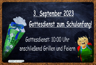 | 10:00 | Gottesdienst zum Schulanfang mit Segnung und anschließendem gemeinsamen Mittagessen |
