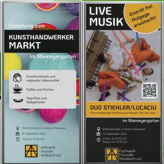 Am 08. September findet von 11-17 Uhr ein Kunsthandwerkermarkt im Niemeyergarten statt. Neben Keramik-, Glas-, Textilarbeiten und vielem mehr gibt es u.a. auch regionale Wurstwaren zu kaufen.
