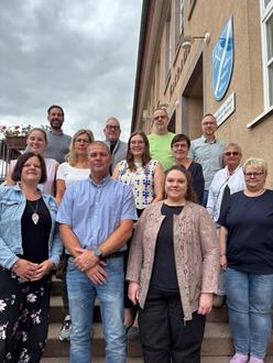 (v.l.n.r. Bürgermeister Daniel Iliev, Büroleiter Oberamtsrat Michael Ernst, Holger Schefzik, Kai Adam, Madeline Schneider, Astrid Schneider, Karolina Bommer, Beate Trieschmann, Heike Eitzert, Tina Baum, Stefan Schnieder, Sabrina Anders, Andrea Bürger)