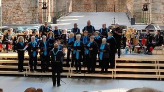 Am Sonntagmorgen, dem 24.08.25, war es dann soweit. Bereits um 08:30 Uhr traf sich der Chor zum Soundchek. Allein die Zusammenarbeit mit den Festspielprofis beim Einsingen, nahm den Sängerinnen und Sängern sofort die Nervosität und die riesige Ruine wurde zum akustischen Verbündeten des Chores. Dem großen Auftritt stand nichts mehr im Wege.