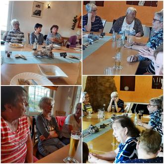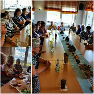 Einige Frauen sind gelaufen, die anderen, sind direkt zur Hütte hoch gefahren. Da es morgens endlich geregnet hat, saßen wir nicht auf der Terrasse sondern im Veranstaltungsraum, der guten Laune hat es nicht geschadet. Es gab viele Gespräche und noch mehr Gelächter, mit ausgezeichnetem Essen verging die Zeit.