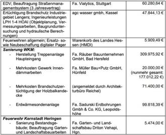 Der Magistrat hat beschlossen, dem Vergleichsvorschlag des Landgerichts Fulda zu Kosten in Höhe von 41.945,37€ zu Lasten der Stadt im Klageverfahren eines Ingenieurbüros aufgrund von Honorarmehrforderungen in Höhe von 83.890,75 € im Rahmen der Baumaßnahme BA 53e 2.Teil Wölfershäuser Str. zuzustimmen.