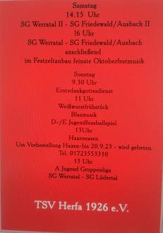 Gefeiert wird am 30.09. & 01.10.2023 auf dem Vereinsgelände des TSV Herfa 1926 e.V.