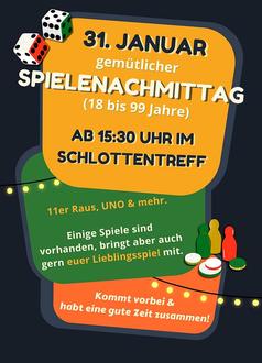 Ab 15:30 Uhr können im Schlottentreff unter anderem 11er Raus, UNO, Schach, Dame, Mühle und mehr gespielt werden.