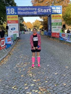 Am 09.10.2022 ging der Magdeburg Marathon in seine 18. Auflage. Start und Ziel befanden sich in den Magdeburger Messehallen. Die abwechslungsreiche Strecke führte die Läufer dann durch die alte Neustadt und den Hafen Richtung Elbufer und weiter Richtung Innenstadt; vorbei am Dom und über den Werder zurück zur Messe. Insgesamt rund 1800 Läufer gingen auf die angebotenen Strecken von 5 bis 42,2 Kilometern. Mit knapp 600 Teilnehmern war der Halbmarathon dabei die am stärksten besetzte Distanz. Auch Nina Stein ging über die 21,1 Kilometer lange Strecke an den Start. Bei guten Laufbedingungen konnte sie ein gleichmäßiges Rennen laufen und erreichte das Ziel nach 1:56:31 Stunden auf einem hervorragenden 8. Rang in der Altersklasse W35.