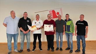 Für 40 Jahre Mitgliedschaft wurden Volker Schneider (im Bild 3. von links), sowie die nicht anwesenden Jörg Koch, Jörg Hartmann und Harald Schade geehrt.