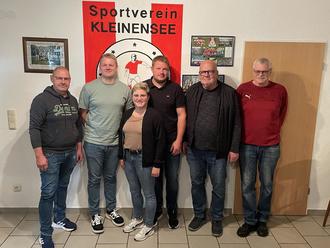 Der neue und wiedergewählte Vorstand SV Kleinensee von li. nach re.: Bernd Theinert (Spielausschuss), Benedikt Theinert (2. Vorsitzender), Lisa Werner (Schriftführerin), Philipp Theinert (Vorsitzender), Bernd Maus (Schriftführer), Bernd Ellenberger (Kassierer)
