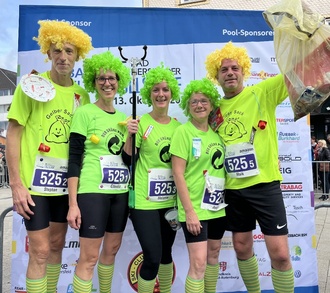 Der TV03 Heringen beteiligte sich in diesem Jahr wieder mit einer Mixed-Mannschaft über die 5 km Strecke. Der Spaß sollte hierbei im Vordergrund stehen und so liefen die „Grünen Punkte & ihre gelben Säcke“ (Jutina und Maik Mrugalla, Claudia und Stephan Franke und Melanie Hercher-Poppe) nicht nur, sondern sammelten auf der Laufstrecke auch noch ein wenig Müll passend zu der Kostümierung.