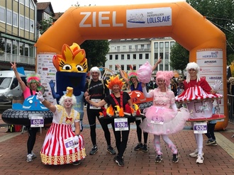 Gegen 10:10 gingen dann unter dem Motto „Wir sind das Lullusfest“ Maik und Justina Mrugalla, Melanie Hercher-Poppe, Claudia und Stephan Franke sowie Carsten Engler und Silke Zoll als Mannschaft über 5 km an den Start. Sie erreichten – unter erschwerten Kostüm-Bedingungen – ihr Ziel als 44. Mannschaft in einer Zeit von 38:26 Minuten.
