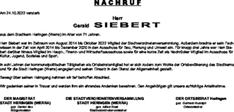 aus dem Stadtkern Heringen (Werra) im Alter von 71 Jahren.