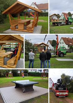 Anfang Oktober konnten endlich zwei Teilprojekte für den Mehrgenerationenplatz umgesetzt werden. Eine stabile und langlebige Tischtennisplatte wurde am 02. Oktober angeliefert und am 10. Oktober lieferte Claus Fend, Inhaber der Firma Konrad Fend aus Ronshausen, die überdachte Sitzgruppe. Wir freuen uns über diese Fortschritte und sind motiviert, in den kommenden Jahren weitere Teilprojekte anzugehen. Ideen, Anregungen und Mithilfe sind jederzeit willkommen.