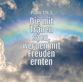 Als Gott die Gefangenen Zions befreite, da waren wir wie Träumende. Da war unser Mund mit Lachen erfüllt und unsere Zunge mit Jubel. Damals sagte man unter den Völkern: "Gott hat Großes für sie getan!" Ja, Großes hat Gott für uns getan! Und wie glücklich waren wir! Gott, wende auch jetzt unser Geschick, so wie du im Negev die Bäche mit Wasser füllst. Wer mit Tränen sät, wird mit Jubel ernten. Weinend trägt er den Saatbeutel hin, doch mit Jubel bringt er die Garben heim.
