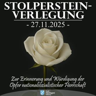 Am Donnerstag, dem 27. November 2025 um 11:00 Uhr, findet gemeinsam mit dem Künstler Gunter Demnig eine Stolperstein-Verlegung zur Erinnerung an die Heringer Opfer der nationalsozialistischen Herrschaft statt. Im Zuge der Stolperstein-Verlegungen werden elf Gedenksteine in der Pfarrstraße/Am Wehrbrunnen verlegt, um den Namen, die Schicksale und die Biografien jener Menschen sichtbar zu machen.
