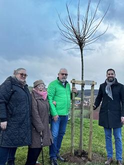 Über eine Baumspende für den Spielplatz am Rottberg konnte sich kürzlich die Stadt Heringen (Werra) freuen. Das Ehepaar Ellen und Walter Endner (1. und 3. v.l.) schenkten zum 90. Geburtstag Frau Eva Reinhardt (2. v.l.) aus Heringen eine Kugelakazie. Da der Spielplatz am Rottberg bislang noch über keinen Baum verfügte, bot sich dieser Platz an. Bürgermeister Iliev bedankte sich herzlich für die Spende im Namen der Stadt.