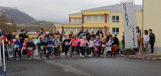 Anschließend ging es für die Kinder auf die 1,1 km lange Strecke, die von der Sporthalle aus hinauf zum Wasserbassin und dann wieder zurückführte. Bei den Mädchen sicherte sich Lara Berger vom TV03 Heringen mit einer beeindruckenden Zeit von 5:12,0 Minuten den ersten Platz. Sie wurde dicht gefolgt von Milena Kammerer vom TV Heilsbronn und Mia Kaufmann von der Georg-August-Zinn-Schule, die mit einer Zeit von 5:20,0 Minuten die zweitschnellste Zeit liefen. Bei den Jungen konnte Aris Donath vom JFV Alsfeld den Sieg erringen, er lief die Strecke in 4:49,0 Minuten. Auf den Plätzen zwei und drei landeten Linus Berger (4:54,0 Minuten) und Eric Schäfer (5:08,0 Minuten). In der Schulklassenwertung, bei der die Anzahl der jeweiligen Starter berücksichtigt wurde, siegte die Klasse 1a der Georg-August-Zinn-Schule, die mit insgesamt sechs Startern die teilnehmerstärkste Klasse war. Die Klasse 2b, 3b und 4b folgten auf dem Platz zwei, wobei jede dieser Klassen mit jeweils drei Läufern vertreten war. Der Wanderpokal, für die teilnehmerstärkste Gruppe, geht auch in diesem Jahr an die GAZ- Heringen.