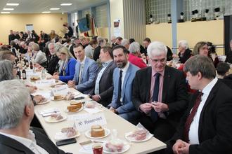 Mit vertreten waren neben den zahlreichen Bergmannsvereinen aus Hessen und Thüringen auch der Bundesvorsitzende der deutschen Bergmanns-, Hütten- und Knappenvereine Bernd Stahl sowie Johannes Zapp als Vorsitzender des hessischen Landesverbandes. Gut besucht war die evangelische Stadtkirche, wo der ökumenische Gottesdienst unter der Leitung von Pfarrer Christoph Rohde und dem stellvertretendem Dekan Michael Zehender gefeiert wurde. Unter den Gästen aus der Politik weilten auch der hessische Wirtschaftsminister Kawel Mansoori, Landrat Thorsten Warnecke, Bürgermeister Daniel Iliev,Tanja Hartdegen, Stefanie Klee, Wilhelm Gebhardt sowie einige Bürgermeister benachbarter Kommunen. Vertreter der K+S Werkleitung, des Bertriebsrates sowie die Direktoren der Werratalschule waren ebenso unter den Gästen anzutreffen. Für den Blick in die Zukunft sorgte dabei ein Sketch, der im Jahre 2075 in der Redaktion einer regionalen Zeitung spielte. Die Akteure unseres Vereines blickten dabei auf den Bergbau im Werrarevier zurück und sehen die Erfolge der Haldenbegrünung. Ananasplantagen bringen eine reiche Ernte und auch der Werratalriesling gedeiht prächtig. Nach dem Gottesdienst führte die Bergparade zurück zur Werratalschule, wo in der Aula, unter den Klängen der Bergmannskapelle Wintershall, das traditionelle Tzscherperfrühstück eingenommen wurde. Nach den Grußworten vom Wirtschaftsminister Mansoori und Bürgermeister Iliev dankte der 1.Vorsitzende Manuel Thenert allen Unterstützern und Helfern des Bergmannsvereins Glückauf Wintershall für ihr vielfältiges Engagement. Zum Abschluß sangen sämtliche Teilnehmer das Steigerlied und tranken den traditionellen Bergmannsschnaps.