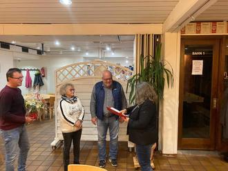 Eine besondere Ehrung konnte bereits vorab Anita Pfromm entgegen nehmen. Anita Pfromm ist seit 50 Jahren aktives Mitglied der SPD. Ehrung und Laudatio übernahmen Tanja Hardtdegen, Michel Patryas, Bernd Maus und Frank Roth. Anita Pfromm hat Ortsvereinsarbeit und auch Engagement bei der sozialdemokratischen Arbeitsgemeinschaft übernommen. Mit einem kleinen Präsent bedankten sich die Vorstandsmitglieder.