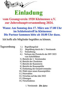Gesangverein 1920 Kleinensee e.V. / Jahreshauptversammlung