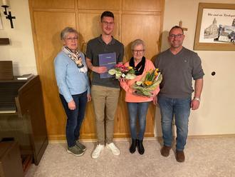 Zum Abschluss des Abends konnte der designierte Vorstand Jörg Hartmann noch gemeinsam mit seiner Vorgängerin Barbara Wittich die Ehrung von langjährigen Mitgliedern übernehmen. So wurde Tim Frömel für 20 Jahre und Christel Müller für 40 Jahre musikalische Mitwirkung vom Landesposaunenwerk ausgezeichnet.
