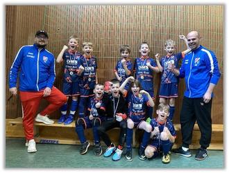 Aufgebot der Siegermannschaft stehend v.l.n.r.: Trainer Tobias Güntsch, Kilian Rabe, Leonard Möller, Jannis Sauerwein, Damian Schirmer, Marlon Fieser, Trainer Sacha Sauerwein | vorn v.l.n.r.: Eliah Walz, Leonard Baumgardt [TW], Emil Schäfer und Patrick-Sebastian Cociu