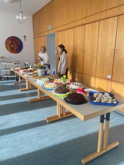 Dank der zahlreichen, mit viel Liebe gebackenen Torten und Kuchen aus den Reihen der Kolleginnen und Kollegen der Stadtverwaltung und aller städtischen Außenbetriebe, besonders zu erwähnen sind hier die Kitas der Stadt Heringen, sowie durch großzügige Geldspenden für belegte Schnittchen, Kaffee und weitere Leckereien, konnten die Gäste bestens versorgt werden.