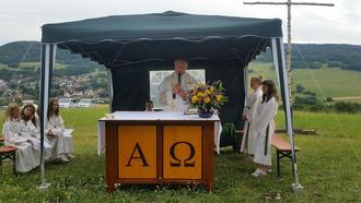 Bei schlechtem Wetter findet die Messe in der Kath. Kirche St. Bartholomäus Hilders statt.