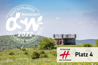 3862 Stimmen, und damit knapp 10 % der abgegebenen Stimmen, hat die Extratour Der Hilderser bei der Wahl zu Deutschlands Schönster Tageswanderung 2022 erhalten. Damit landet der 12 km lange Rundwanderweg auf Platz 4.