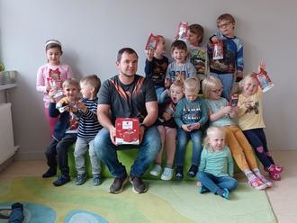 Ein Teil Ihrer Einnahmen kam dem Kindergartenverein als Sachspende zugute. DOMINIK HERGET, überreichte stellvertretend für alle seine Freunde den glücklichen Kindern eine TONIBOX mit zahlreichen Tonies.