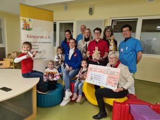 Vom Vorstand des Fördervereins Känguruh konnte der Direktor der Klinik für Kinder - und Jugendmedizin Prof. Dr. Reinald Repp sowie der zweite Vorsitzende Dr. Takanori Sasaki und Frau Möller den Scheck in Höhe von 500 Euro für ihre so wichtige Arbeit entgegennehmen. Geborgenheit auch in schweren Zeiten, so lautet das Motto des Vereins. Durch das Engagement von Känguruh können Klinikclowns, Zauberer und auch Musik für die Kleinen finanziert werden.