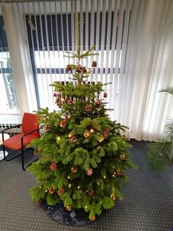 Eine Woche vor dem 1.Advent wurden wir von einer netten Dame der VR-Bank Hilders gefragt, ob wir den Tannenbaum im Foyer ihrer Einrichtung schmücken würden. Die Kinder waren sofort Feuer und Flamme. Gesagt – getan! In Windeseile zauberten die Kinder aus dem Kindergarten Simmershausen einen Baumschmuck, der sich wirklich sehen lassen kann. Oder was meinen Sie?