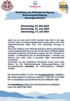 Familienzentrum Hofbieber - Erstellung von Patientenverfügung, Betreuungsverfügung, Vorsorgevollmacht