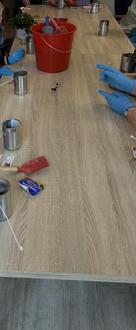 Am 26.03.2025 haben die Senioren der "Alten Schule-Tagespflege Schwarzbach" sowie wir Füchse von der KiTa gemeinsam an einem tollen Projekt gearbeitet. Unter dem Punkt der Verschönerung des Zaunes, haben wir zusammen in Konservendosen bunte Blumen und Samen gepflanzt. Die Senioren und Kinder unterstützten sich gegenseitig dabei die Dosen mit Erde zu befüllen und dann die Pflanzen einzutopfen. Dabei hatten alle Spaß und viele Gespräche wurden geführt. Im Anschluss daran, wurden die Konserven mit Hilfe von Kabelbindern am Zaun befestigt. Nun warten wir alle gespannt darauf, dass der Zaun in bunten Farben erblüht.